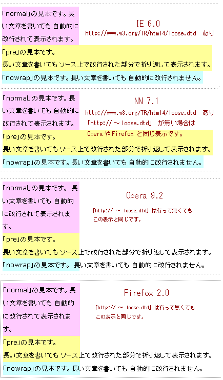 ちなみにOPERAとFirefoxでは「http:// ~ loose.dtd」があっても無くても同じ表示でしたが、IEとは全く表示方法が違います。(参照画像はこちら[15.7KB] からどうぞ。)